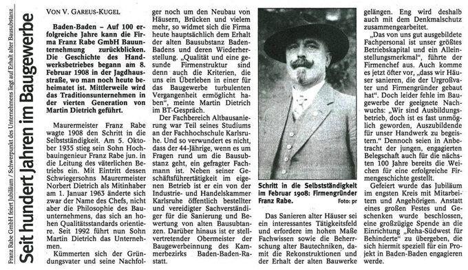DIE FIRMA FRANZ RABE GMBH BAUUNTERNEHMUNG KANN AUF ÜBER 100 ERFOLGREICHE JAHRE ZURÜCKBLICKEN: